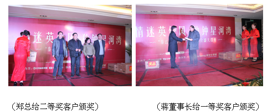 為回饋廣大準(zhǔn)業(yè)主對泰達(dá)星河灣的厚愛,這次活動主辦方特別安排了抽獎環(huán)節(jié),分別設(shè)有一、二、三等獎,其中一等獎1名,獎品為IPAD2平板電腦,二、三等獎獎品豐厚,抽獎也將現(xiàn)場的氣氛再一次帶到高潮。 最后在頒獎中,本次活動圓滿結(jié)束